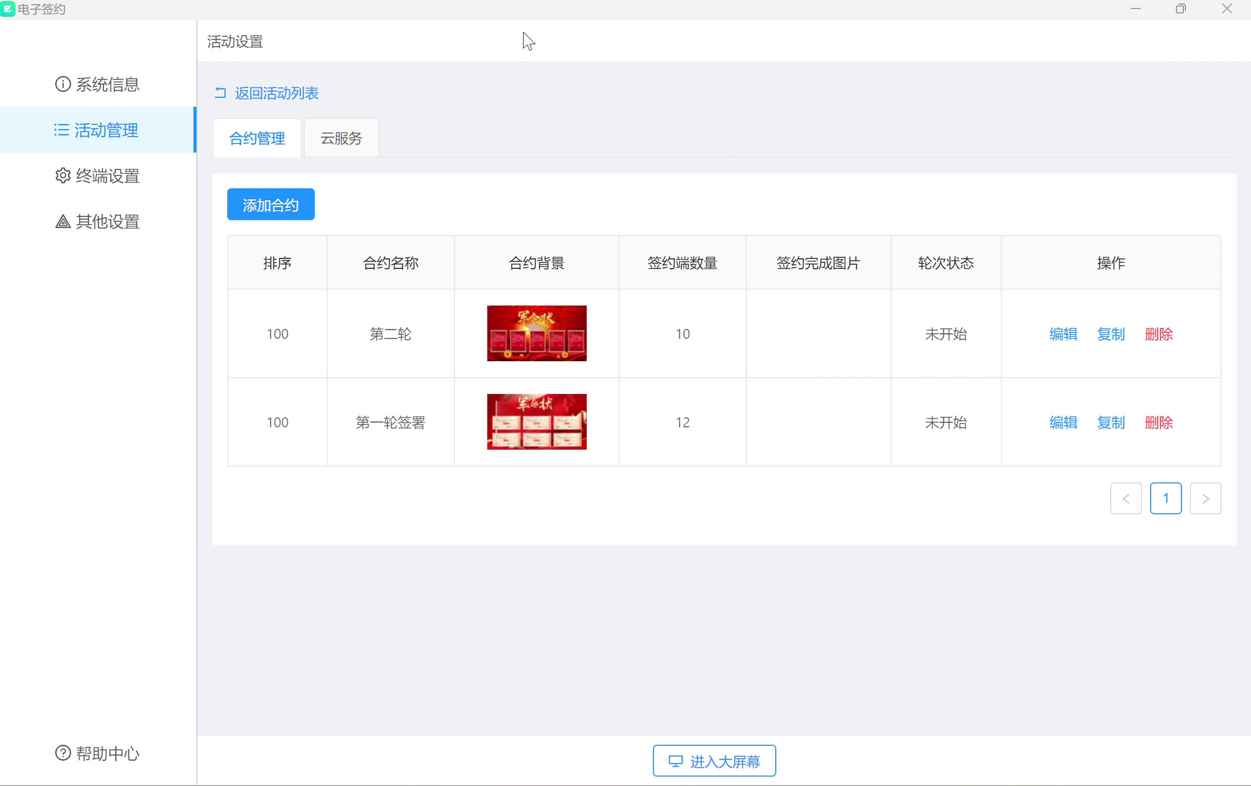 多活动和多合约管理:支持创建和管理多个活动,每个活动可以独立配置,数据相互独立,确保信息的安全和管理的便捷。并且对每场活动可以设置多个签署合约,并支持对每份合约进行自定义设置,满足个性化需求。