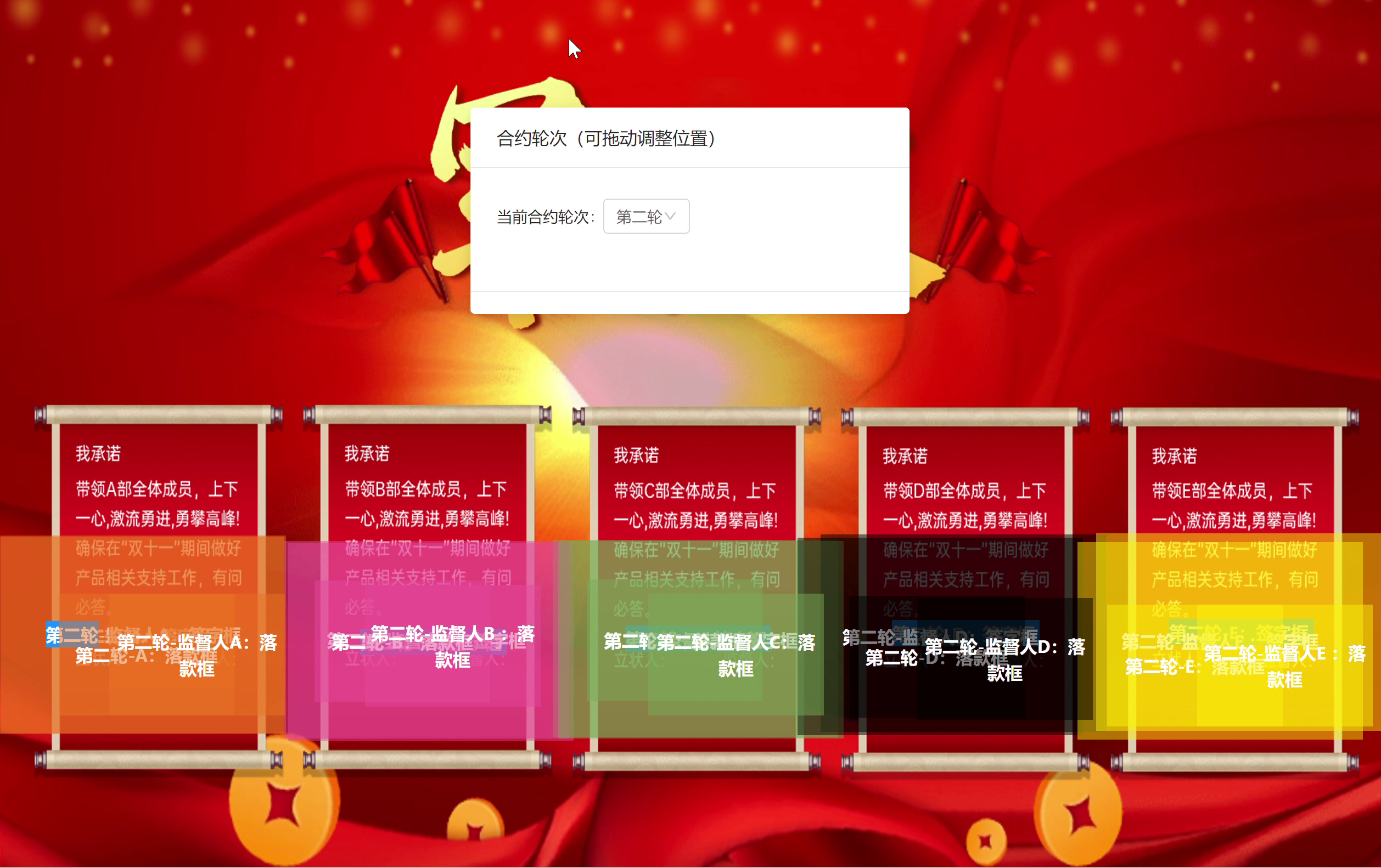 电子军令状签署是一种现代化的动员仪式,通过数字化技术将传统的纸质军令状签署转变为高效、便捷的电子签署形式。它以大屏幕和iPad终端为媒介,通过实时签名展示和高科技手段,增强观众的视觉体验和参与感。系统支持一对一、一对多、多对多的签署形式,可快速配置多场活动和合约,数据独立管理。通过高效管理,快速配置签署信息和程序,减少人为错误和时间浪费。
