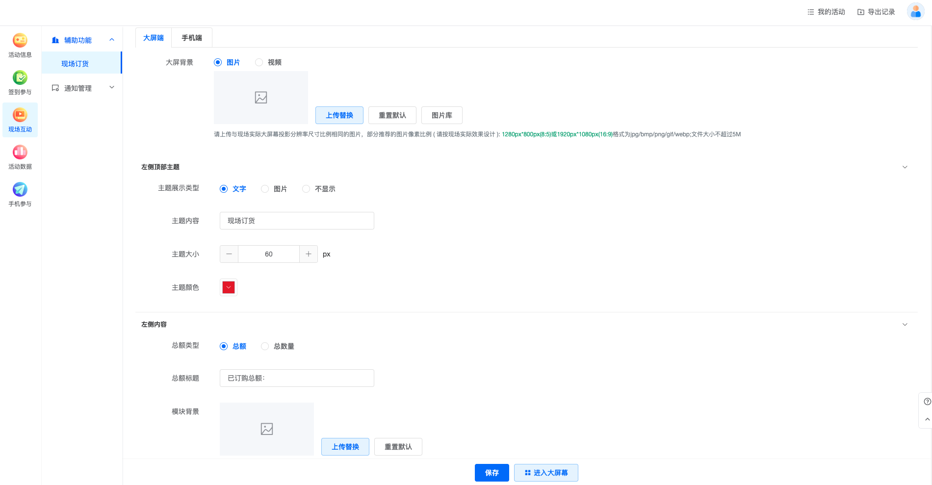 4. 参与者互动 通过开启手机端订货功能,参与者可以直接在手机端输入订货数量,增加了活动的互动性和参与度。系统确保订货数据的实时更新,同时允许主办方控制展示内容,保持活动的专业水准。